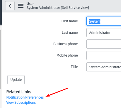 Your users can access their notification preferences as usual, by going to their user icon at the top-right, clicking Profile, and then clicking the Notification Preferences UI action on the corresponding page.